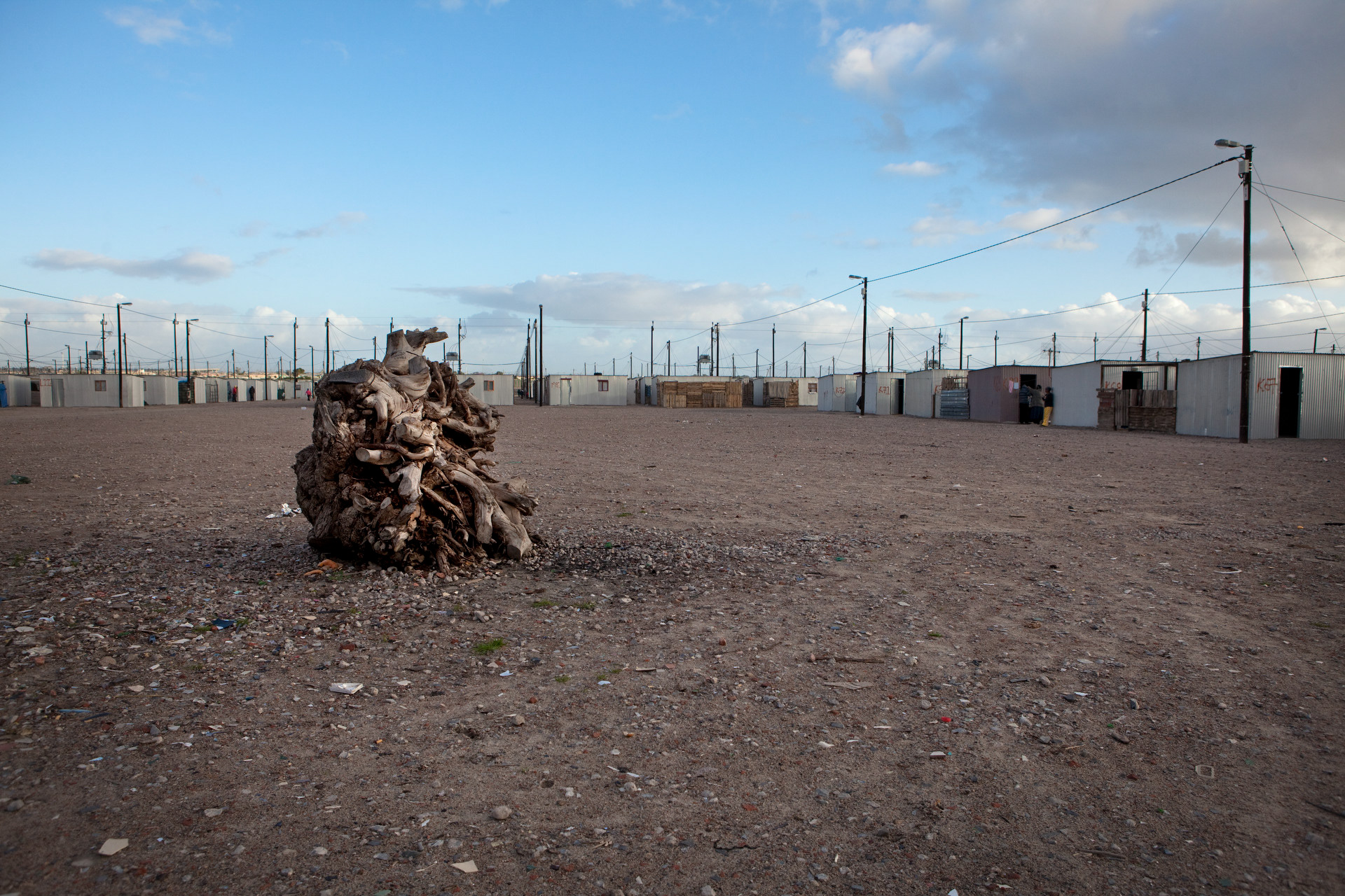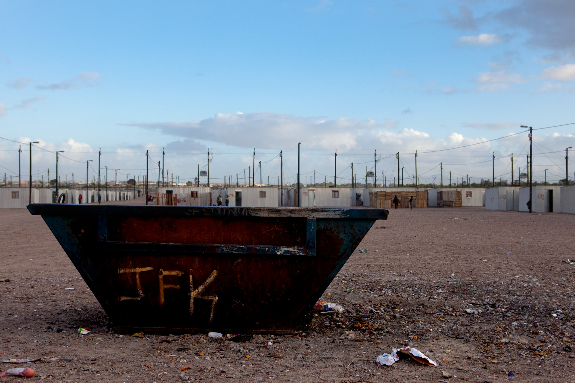Blikkiesdorp was built by the City of Cape Town in 2007. It contains approximately 1,600 one room structures. According to government officials, it has cost over 30 million rand to build. The structures have walls and roofs made of thin tin and zinc sheets. They are of 18 square meters in size. Ablution, sanitation, and water facilities are shared between four structures. Blikkiesdorp has become well-known for its high crime rate, its substandard living conditions, and its extremely hot or cold, windy and sandy living environment. It has been called an informal settlement by City of Cape Town officials despite its formal structure being built by the government.In response to the citicisms, the City has called Blikkiesdorp the safest informal settlement in Cape Town. It has also been compared to a concentration camp by residents and in national and international media. Blikkiesdorp has been instrumental in relocating residents evicted from elsewhere in the City. Many evicted residents of Salt River and Woodstock have found themselves in the relocation camp almost 30 kilometers away from town.It has been called a dumping ground for unwanted and or homeless people from all over Cape Town.The evicted symphony Way Pavement Dwellers were moved to Blikkiesdorp in October 2009 after occupying Symphony Way for almost two years.