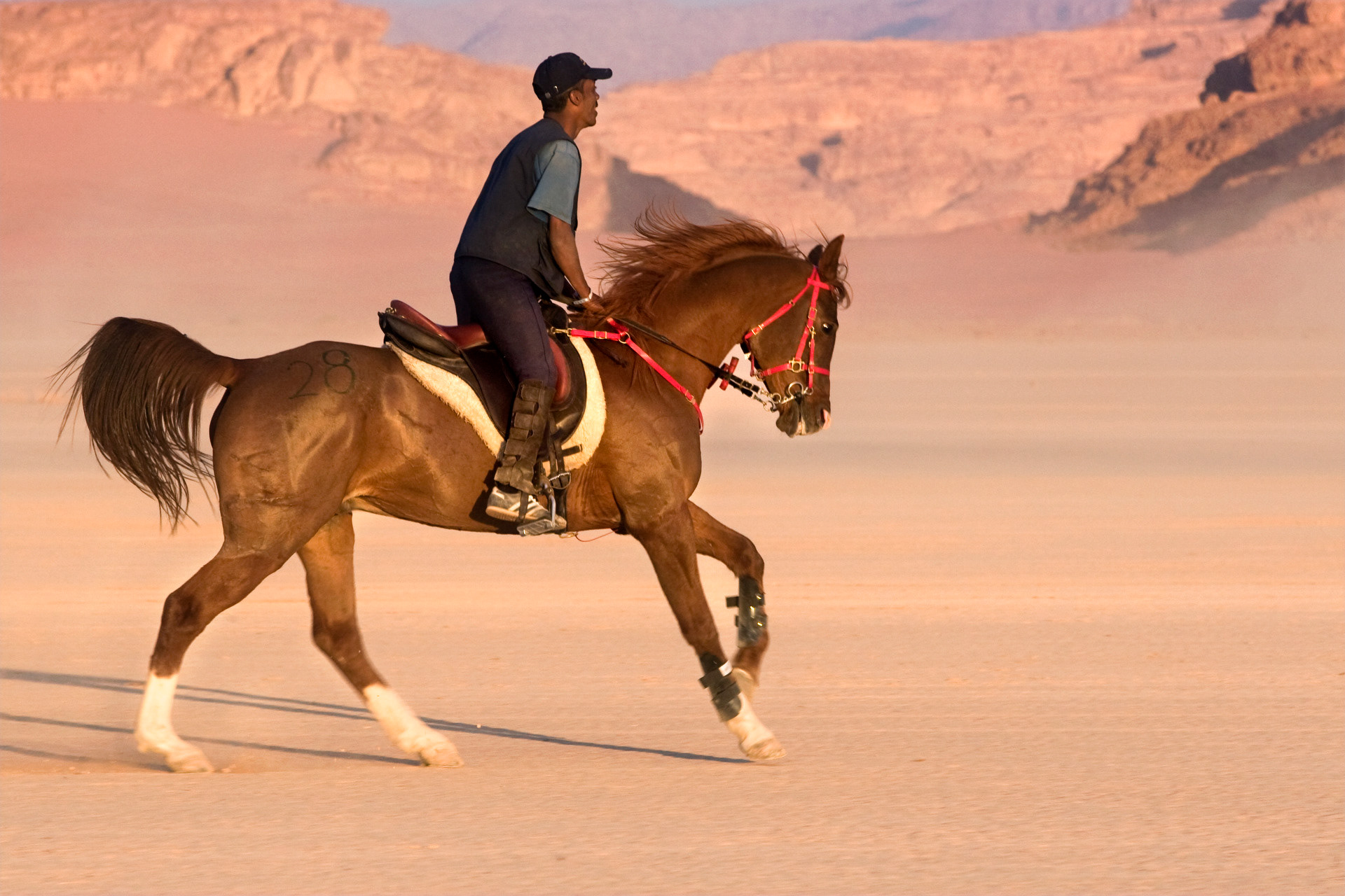 horse race in Wadi Rum desert, Jordan